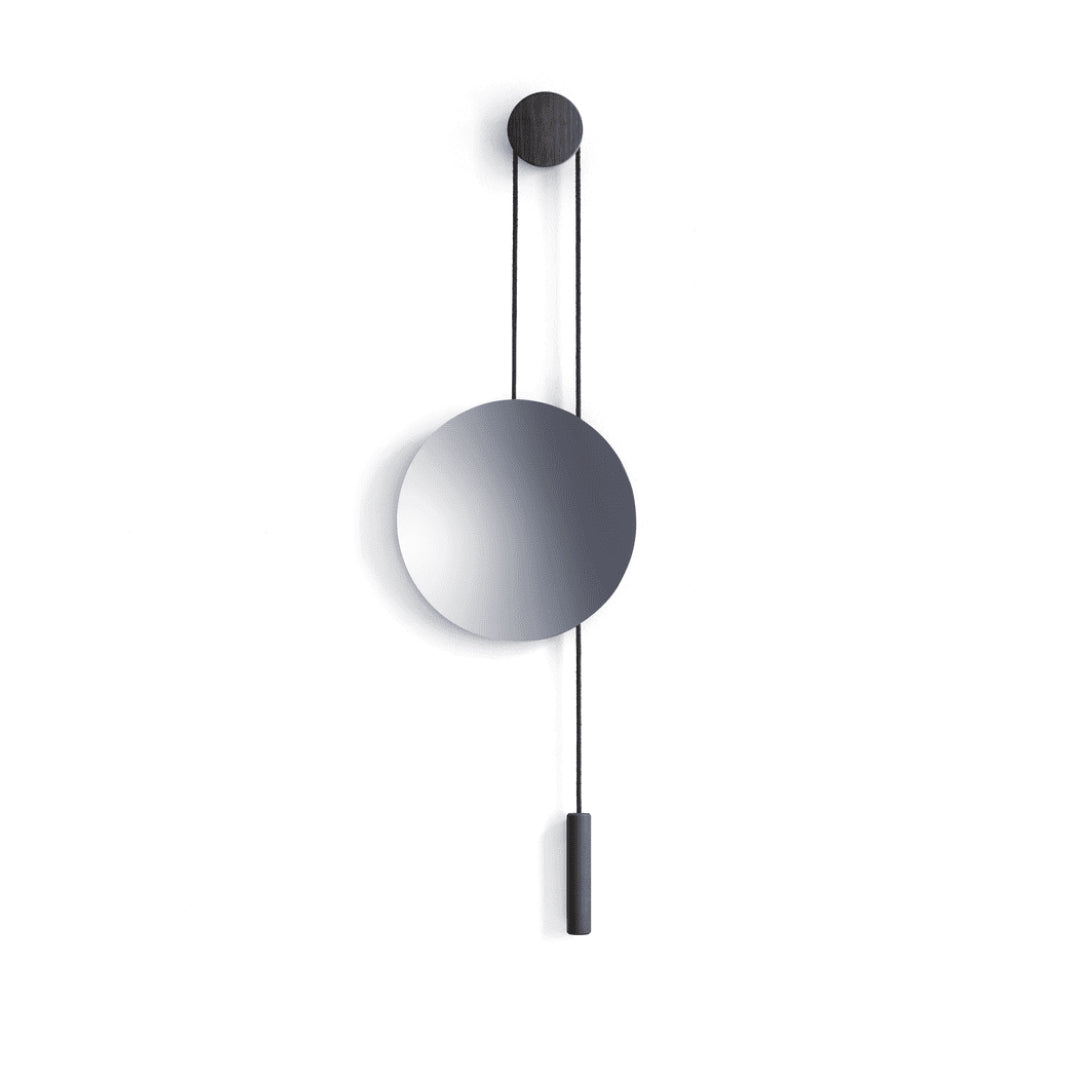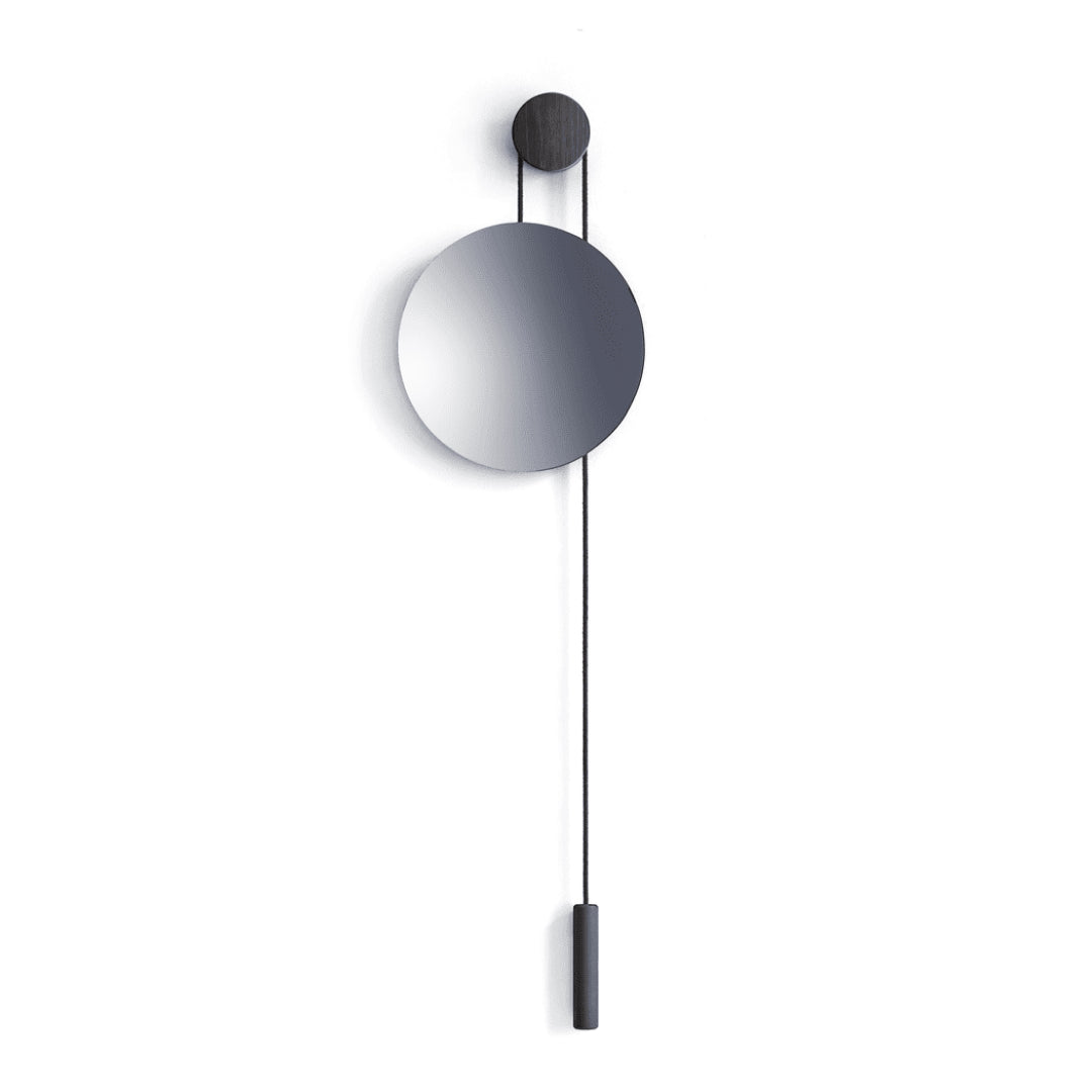The Rise & Shine Wall Mirror by New Works features an asymmetrical design and a harmonious blend of materials. An oak centerpiece grounds the dynamic interaction between the mirror and brass or steel, offering a fluid, ever-changing reflection. Balancing function and artistry, it doubles as a practical mirror and a stunning interior focal point.