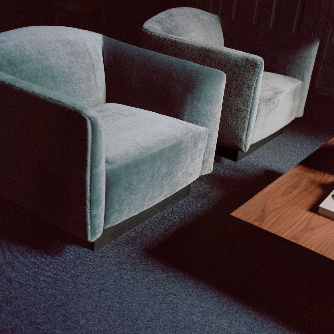 The New Works Shore Lounge Chair invites the eye to wander across the subtle curvature of the backrest, inspired by the movement of a wave. The subtle curvature is the perfect support for the body, while the plinth base contrasts the soft upper and lifts the furniture so that it appears to be floating.