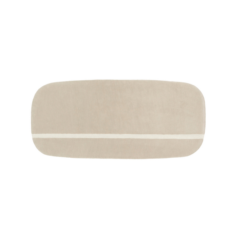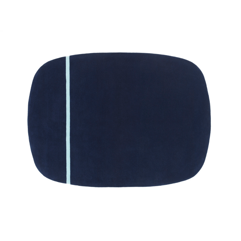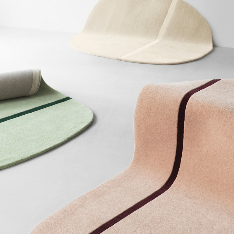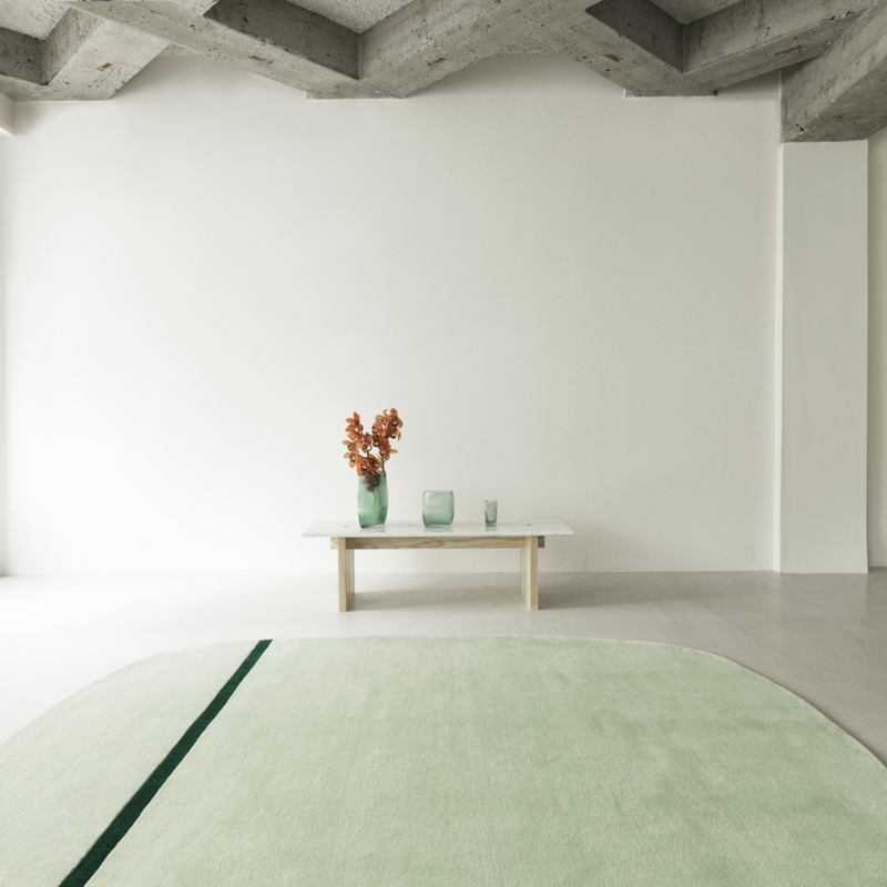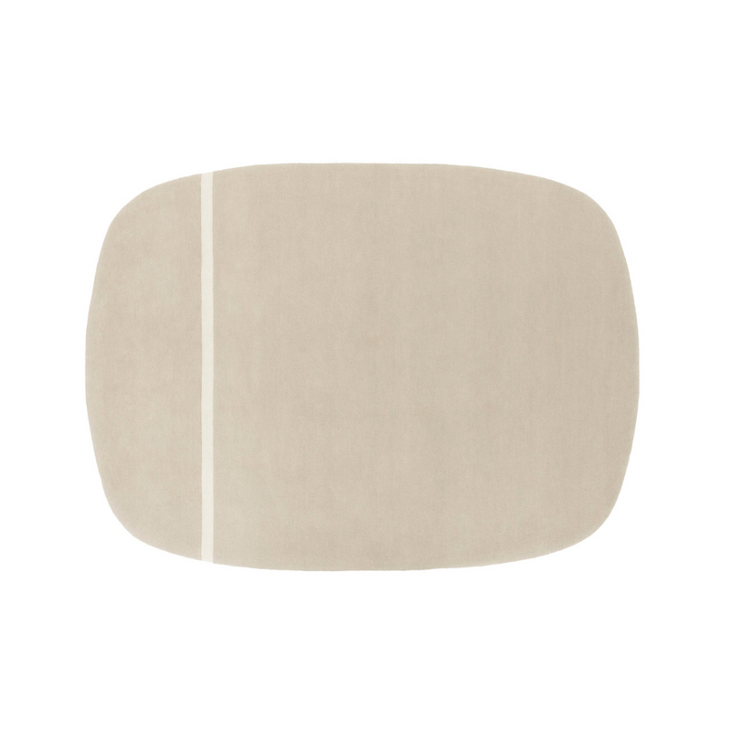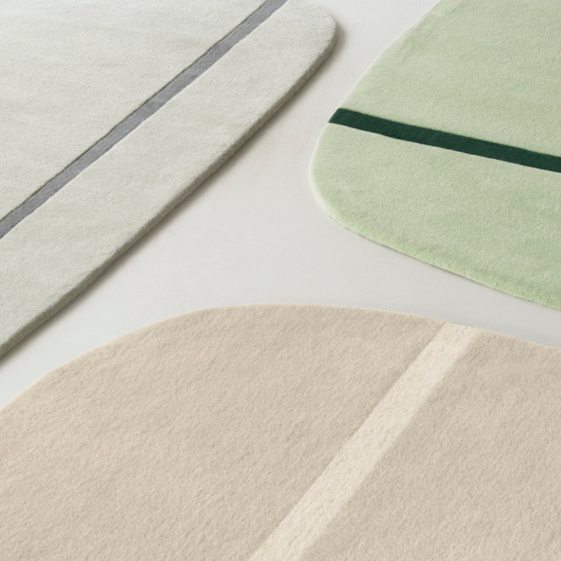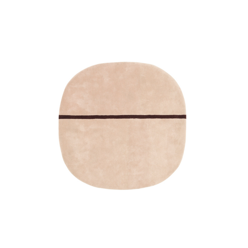 The Oona hand-knotted rugs have a simple and graphical feel. Clean lines and soft curves meet to create three unique shapes that are neither round nor square. We love the simple darker line that breaks up the plain color of the surface.
