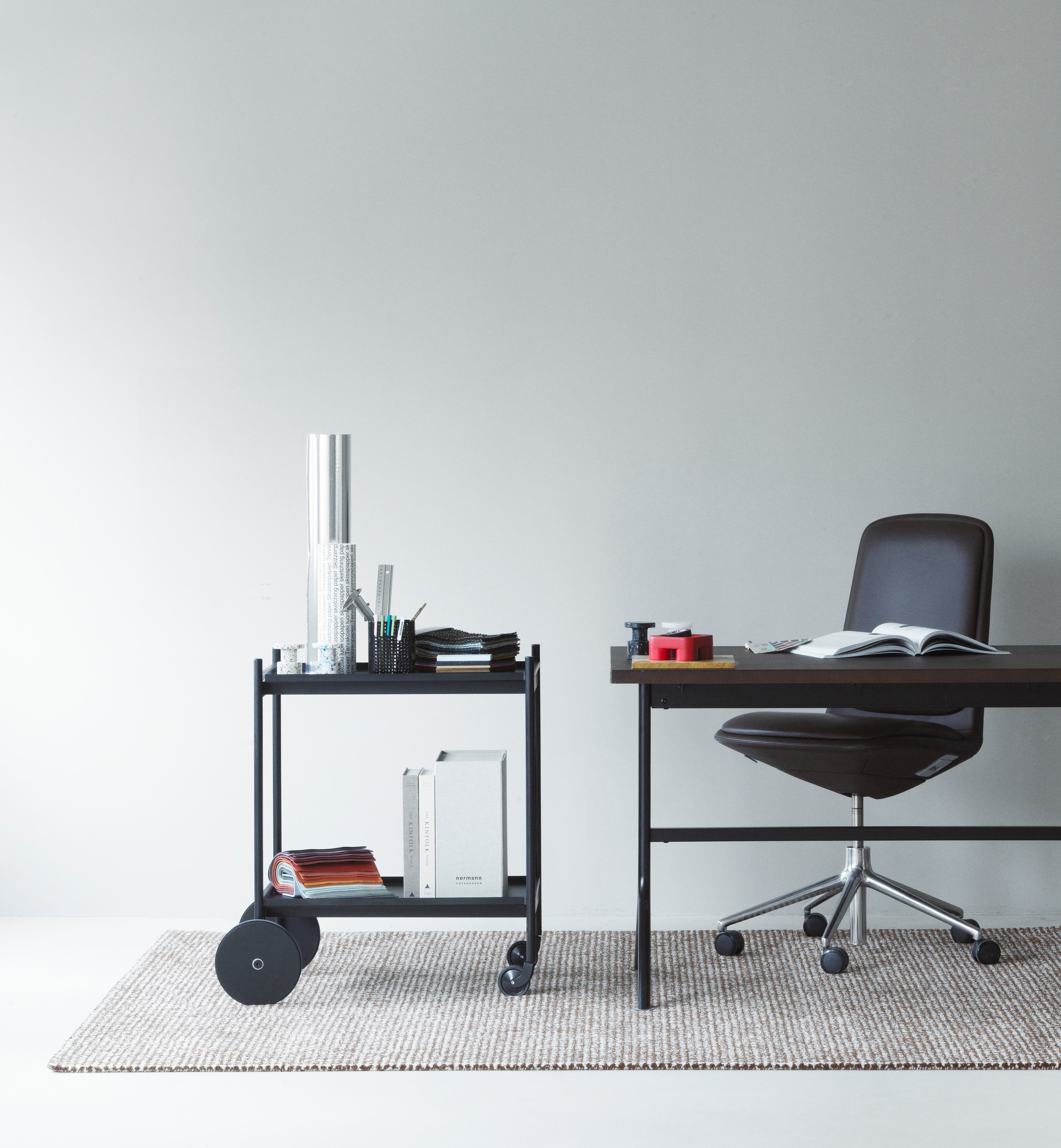 The Normann Copenhagen Rul Trolley, designed by Simon Legald, is a sleek and versatile piece crafted from durable powder-coated steel. True to its name—meaning “roll” in Danish—this functional yet understated trolley moves effortlessly through modern living spaces, allowing its contents to take center stage.