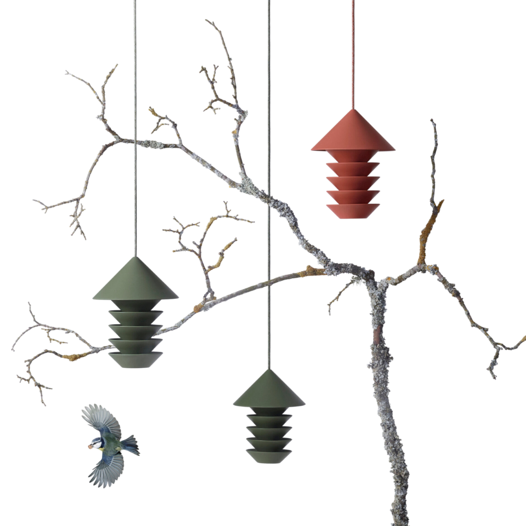 The Pidät Bird Silo is created from 100% recycled plastic, with materials pulled from everyday consumer waste. The two color options are produced with a sustainable, water free process. Inspired by traditional vertical silo feeders, the final design functions the same, as you fill from the top cone - which leads down to the bottom.