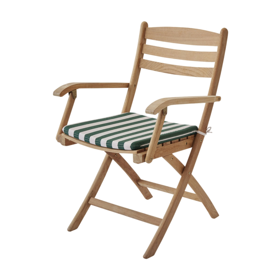 Cushion for the Selandia Armchair, custom-made to fit the Selandia collection. It's easy to tie the cushion to the seat with strings. The cushion fabric are Oeko-Tex certified, able to withstand wind and weather while being water-repellant, dirt-repellant, and mildew-resistent. Even after heavy rain, the cushion dries exceptionally quickly thanks to the foam's open-cell structure, allowing water and air to pass through. It also makes for a firm and comfortable texture for sitting!