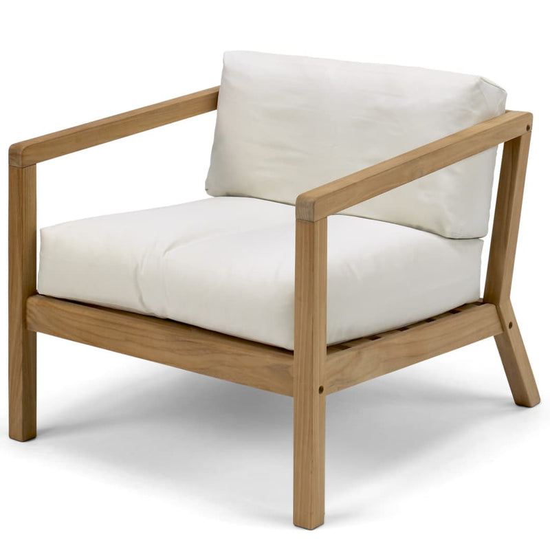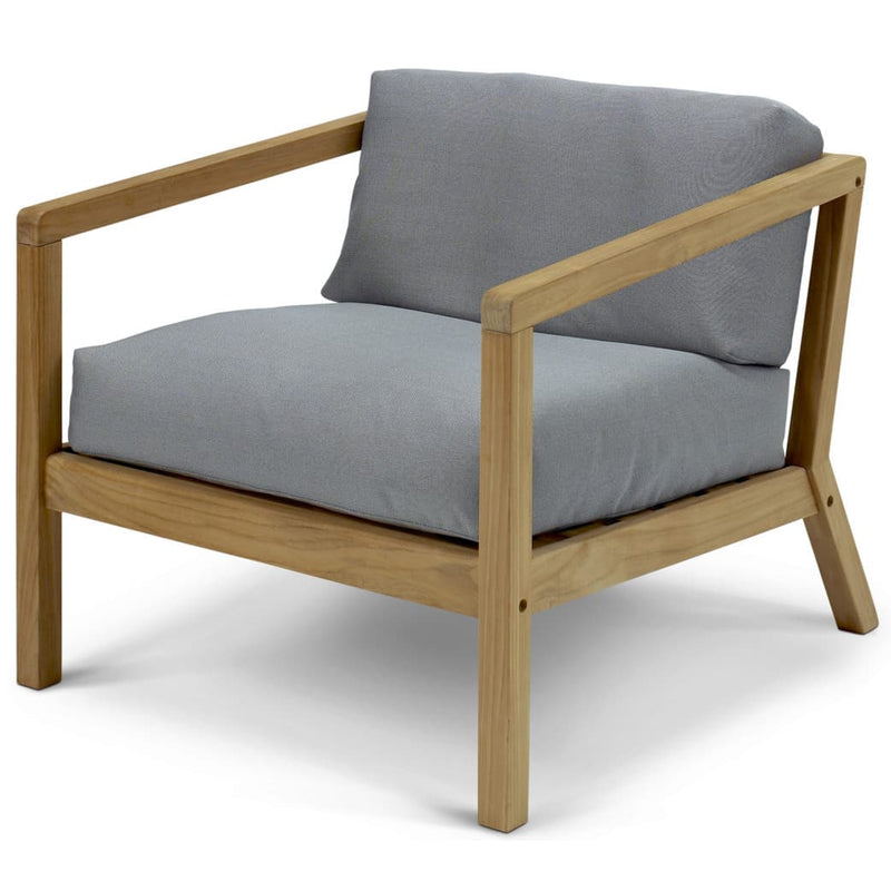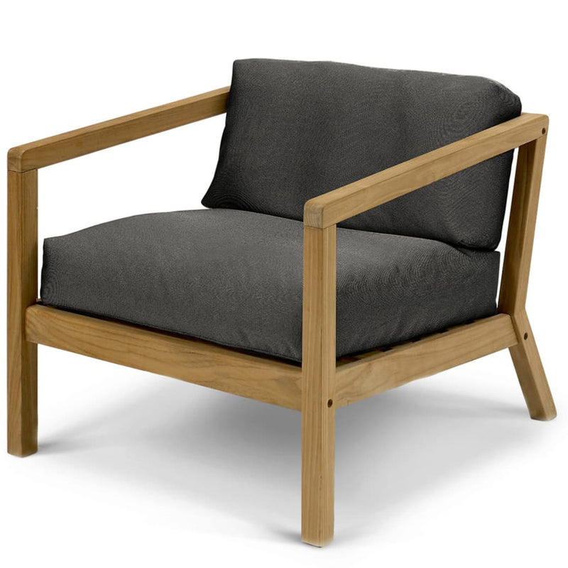 The Skagerak Virkelyst Chair is a modern outdoor sofa with the seating comfort of an indoor furniture. The simple wooden frame strikes a contrast with the thick, soft cushions. The upholstery of the Virkelyst Outdoor Chair are Oeko-Tex certified and are not only extremely color and lightfast but also water, dirt-repellent and mildew-resistant. The solid teak frame is simple and high quality that without treatment will turn a beautiful silvery grey color. Should you wish to retain the classic teak "honey" appearance, regular treating is required.
