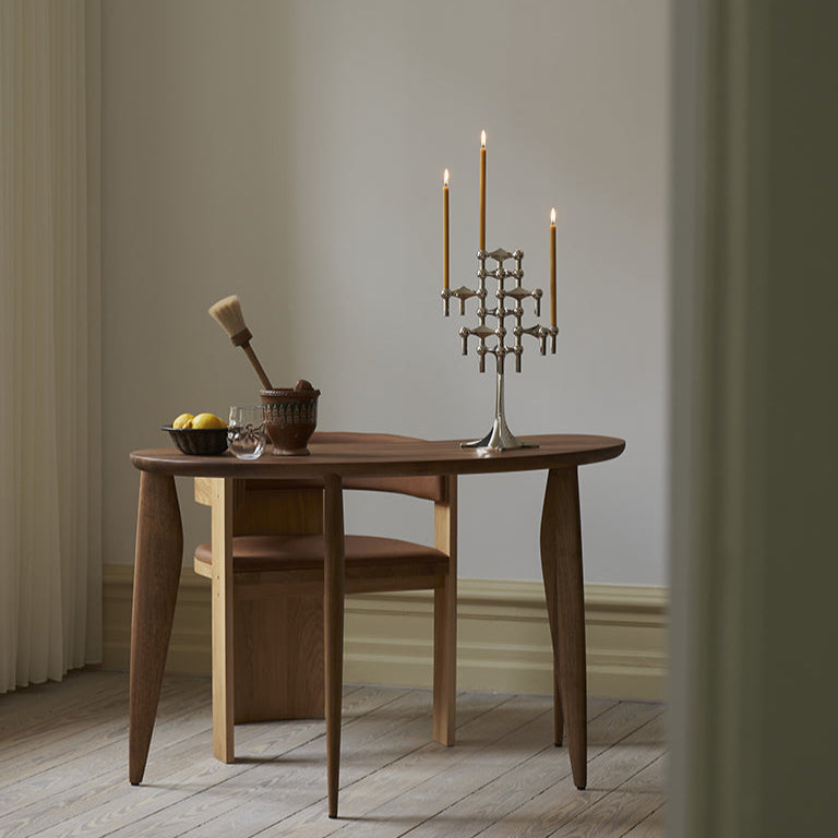 Designed to pair seamlessly with STOFF Nagel candle holders, this set of 8 candles contains 10% beeswax, which naturally purifies the air and enhances the indoor atmosphere. The beeswax also imparts a subtle, honey-like aroma. These candles are crafted longer than the standard STOFF Nagel candles, offering extended burn time and an elegant, refined appearance.