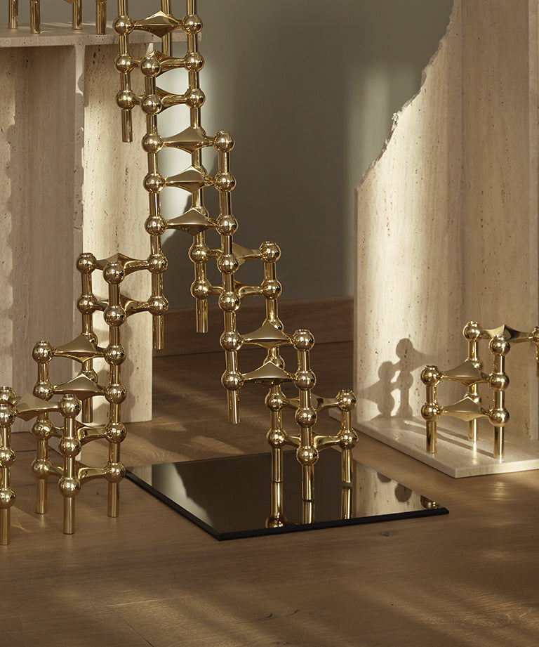 Glass base is an exclusive addition to the STOFF Nagel family. The special mirror effect embraces the light and elegantly captures the sculptural reflections of the candle holders. The exclusive STOFF Nagel Glass base is made from solid coloured glass and has a thin felt layer on the bottom to prevent your table from getting scratched. It comes in the colours smoked black and smoked brown in both a quadratic and a rectangular shape.