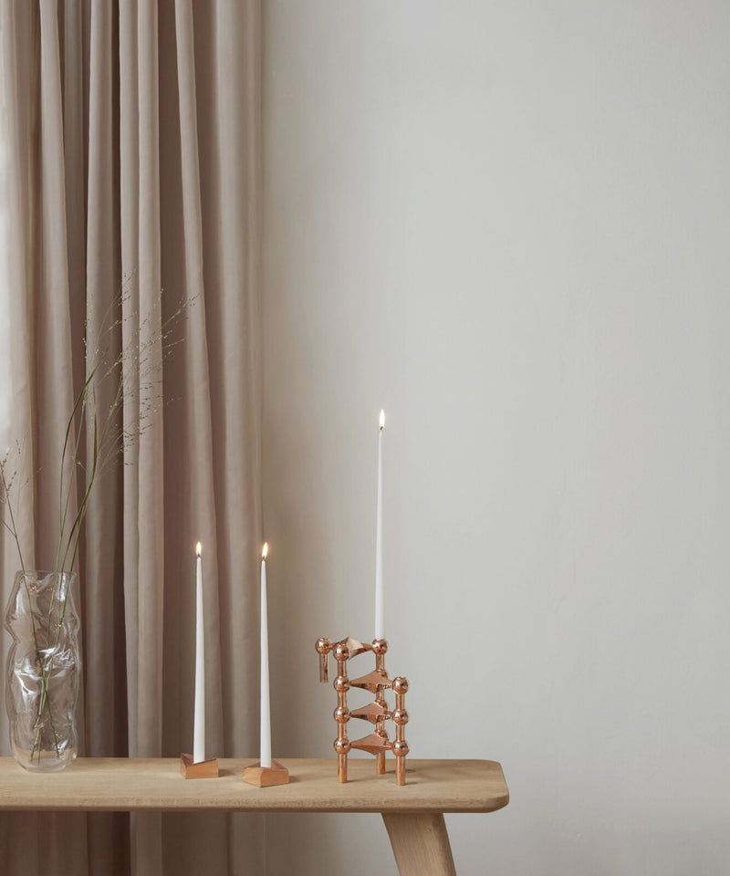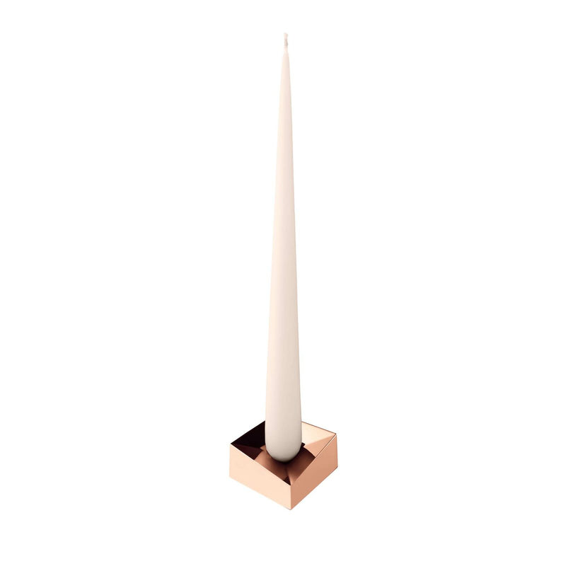 Reflect is considered a beautiful continuance of STOFF Nagel's vision to create timeless candle holder designs. With its simplicity of design combined with geometrical shapes, the Reflect Candle Holder - Large - Rose Gold plays with reflections and light adding a visual intrigue into the spaces surrounding it. The candle holder is available in a small and large edition in three different colors, making it possible to create beautiful color combinations including both traditional candles and STOFF Nagel taper candles.