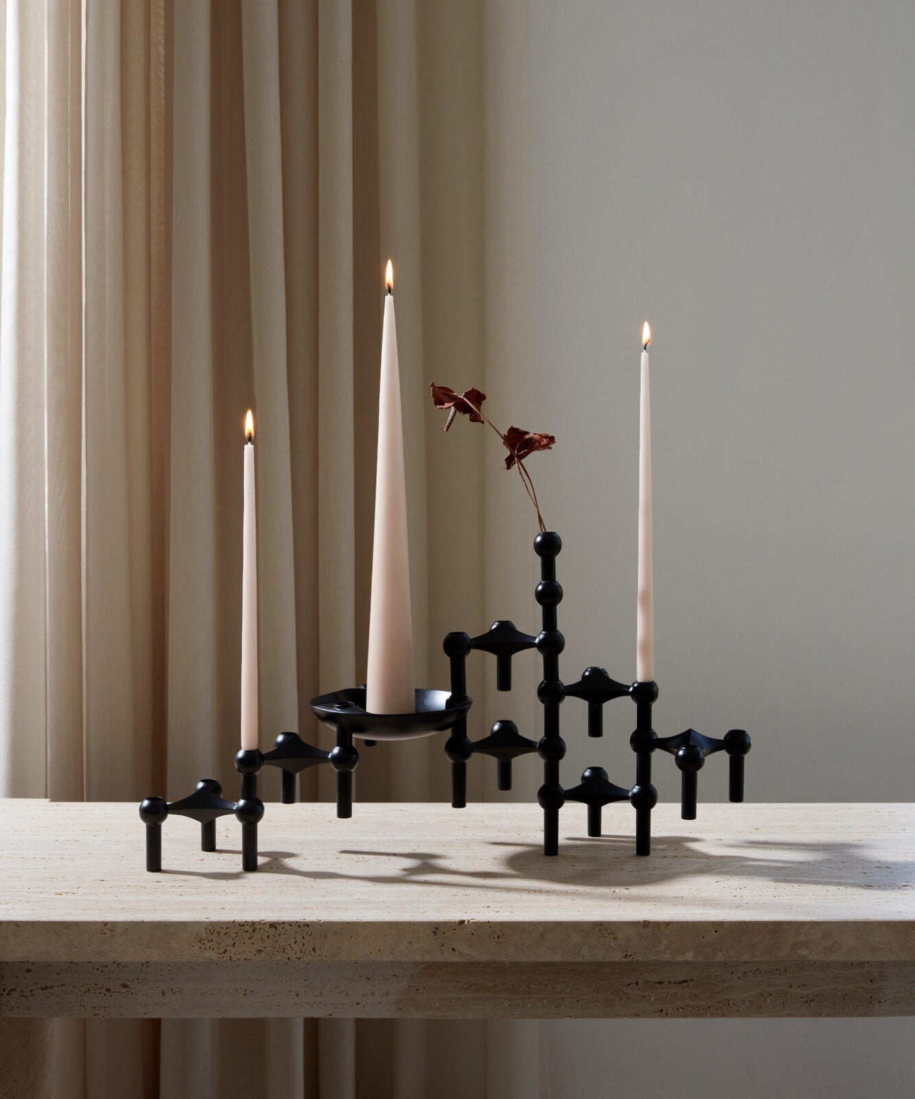 Launched in 2019, the STOFF Nagel Vase in Black is one of the latest members of the STOFF Nagel family. It is designed as a natural continuance of the characteristic STOFF Nagel expression and can be combined with both the candle holders, the bowl, and the stand. The vase adds an extra dimension to the classic design and allows you to include a colorful flower decoration of your choice to your sculpture. Depending on the season and trends both fresh and dried flowers goes beautifully into the vase.