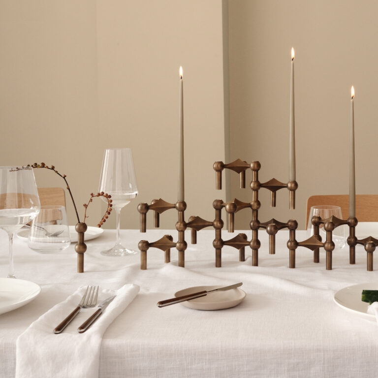 The STOFF Nagel Vase in Bronzed Brass is designed to seamlessly continue the distinctive STOFF Nagel style and can be paired with the candle holders, bowl, and stand. This vase enhances the classic design, allowing you to add colorful flowers to your sculpture. Both fresh and dried flowers, depending on the season and trends, look beautiful in the vase.