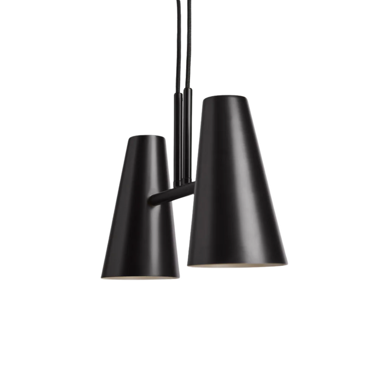 The Cono Pendant Lamp with 2 Shades is part of a series that pays tribute to Benny Frandsen, a great Danish lighting designer and manufacturer. Cono is made unique by the combination of classic geometric shades with a minimalistic yet soft visual expression, enhanced by the matte silky surface. The name Cono is inspired by the mathematical form Conoid, referencing how the light emits a conical-shaped spotlight.