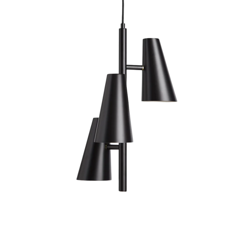 The Cono Pendant Lamp with 3 Shades is part of a series that pays tribute to Benny Frandsen, a great Danish lighting designer and manufacturer. Cono is made unique by the combination of classic geometric shades with a minimalistic yet soft visual expression, enhanced by the matte silky surface. The name Cono is inspired by the mathematical form Conoid, referencing how the light emits a conical-shaped spotlight.