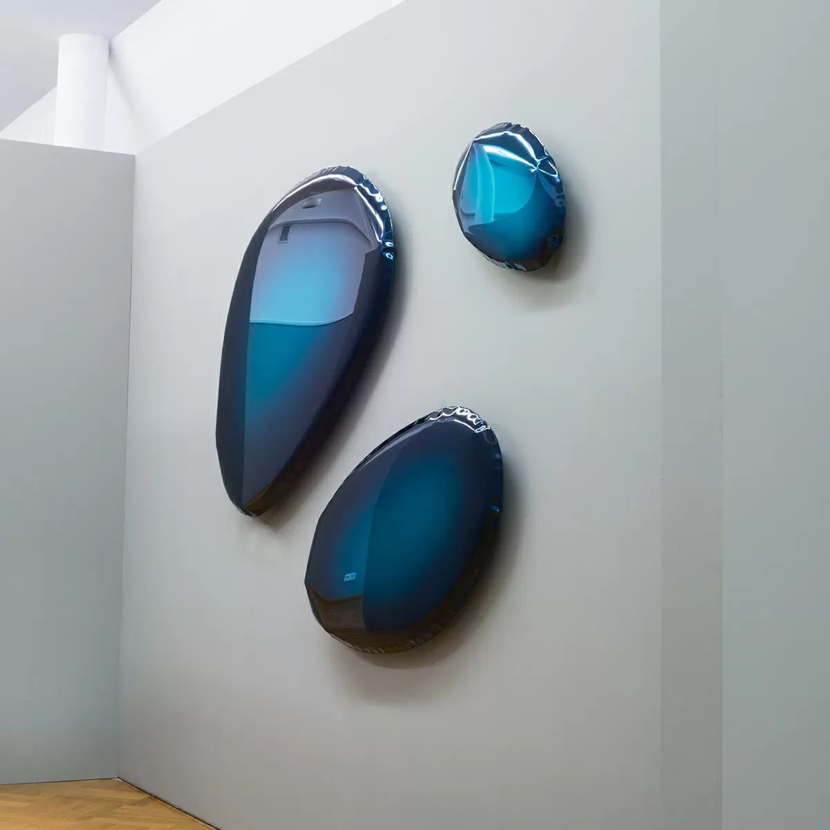 Available in seven sizes and a range of finishes, TAFLA O mirrors can be displayed solo as statement pieces or arranged in striking wall compositions. Blurring the line between art and design, these mirrors interact with their surroundings through dynamic reflections and fluid forms. Designed with sustainability and longevity in mind, TAFLA O is both a collectible sculpture and a bold statement piece.