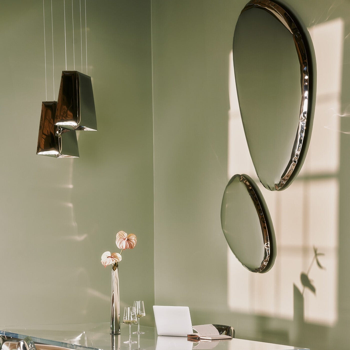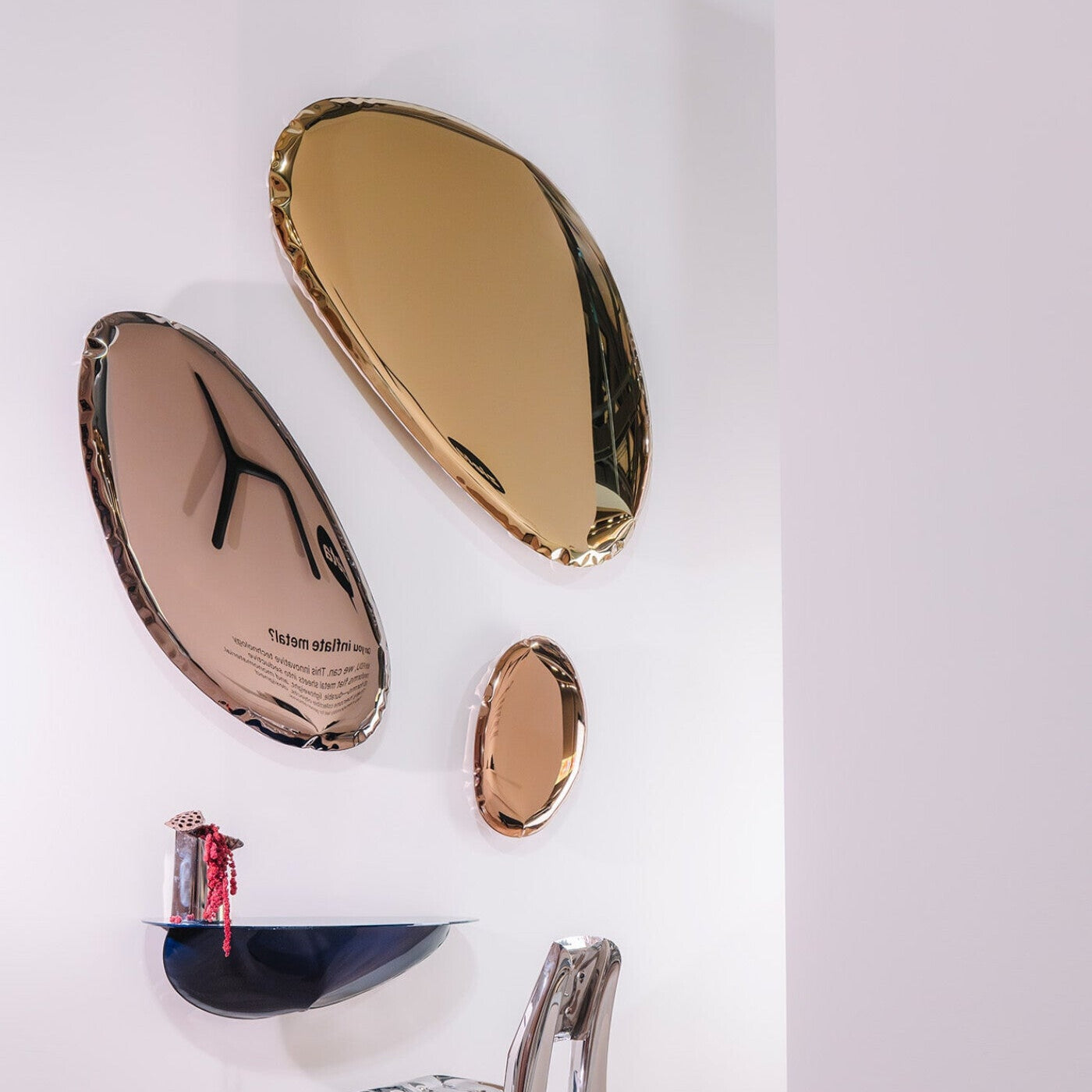 Available in seven sizes and a range of finishes, TAFLA O mirrors can be displayed solo as statement pieces or arranged in striking wall compositions. Blurring the line between art and design, these mirrors interact with their surroundings through dynamic reflections and fluid forms. Designed with sustainability and longevity in mind, TAFLA O is both a collectible sculpture and a bold statement piece.